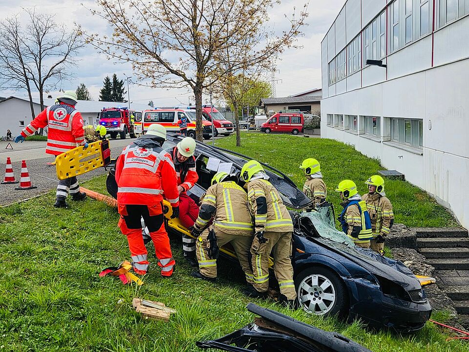 Die Feuerwehr Dußlingen übernahm die technische Rettung der eingeklemmten Personen und konnte hierbei verschiedene Vorgehensweisen unter realitätsnahen Bedingungen üben. Parallel dazu kümmerte sich das DRK um die medizinische Versorgung der Verletzten und trainierte unterschiedliche Verletzungsmuster sowie die strukturierte Patientenversorgung.